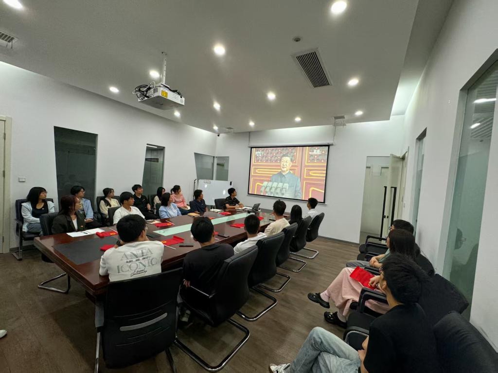 组织师生集中观看大会直播,共同见证祖国的强盛荣光。
